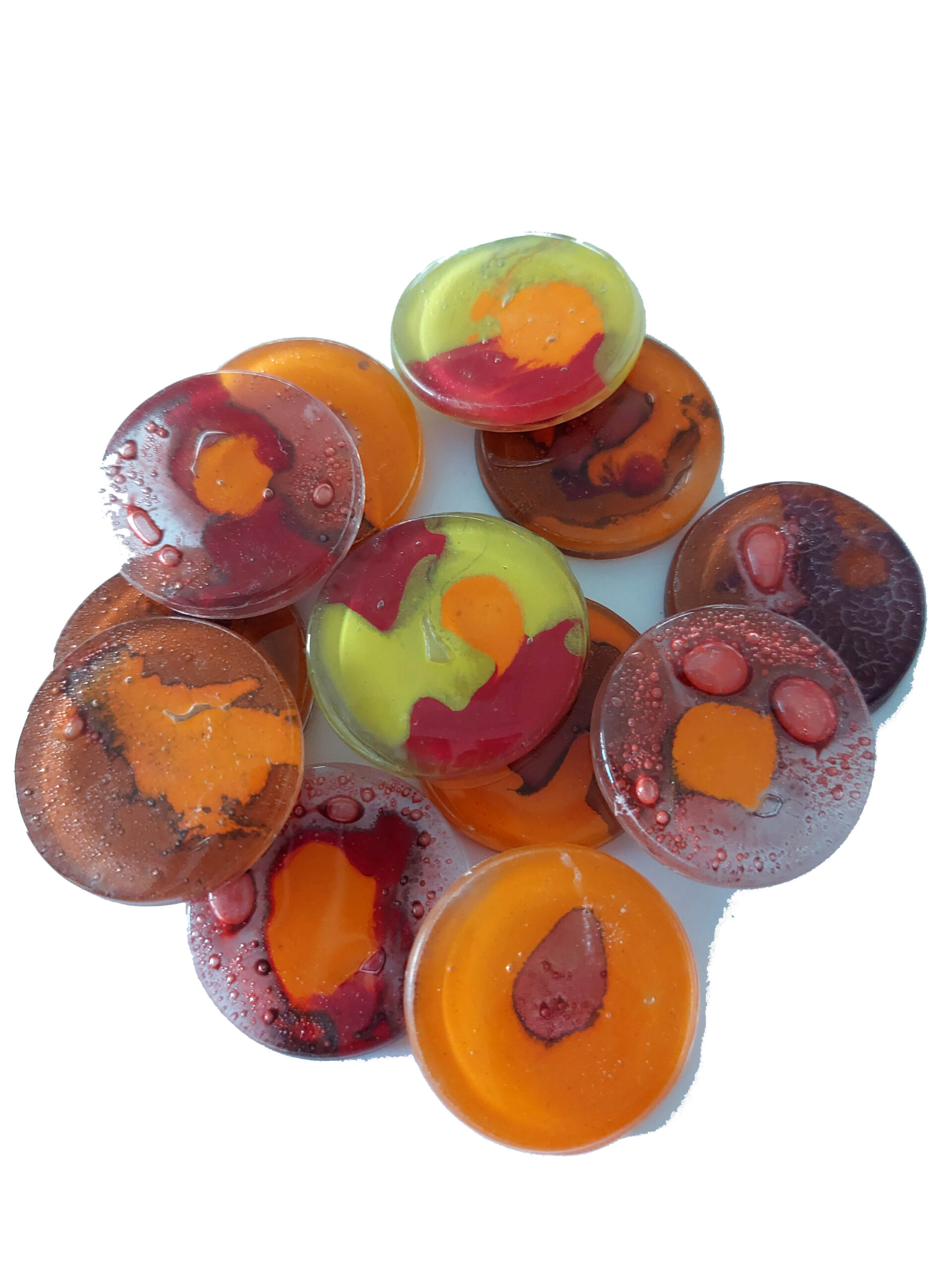 Circulos en vitrofusion de 2,5cm diam Naran/rojo x 2 unid. para mosaiquismo