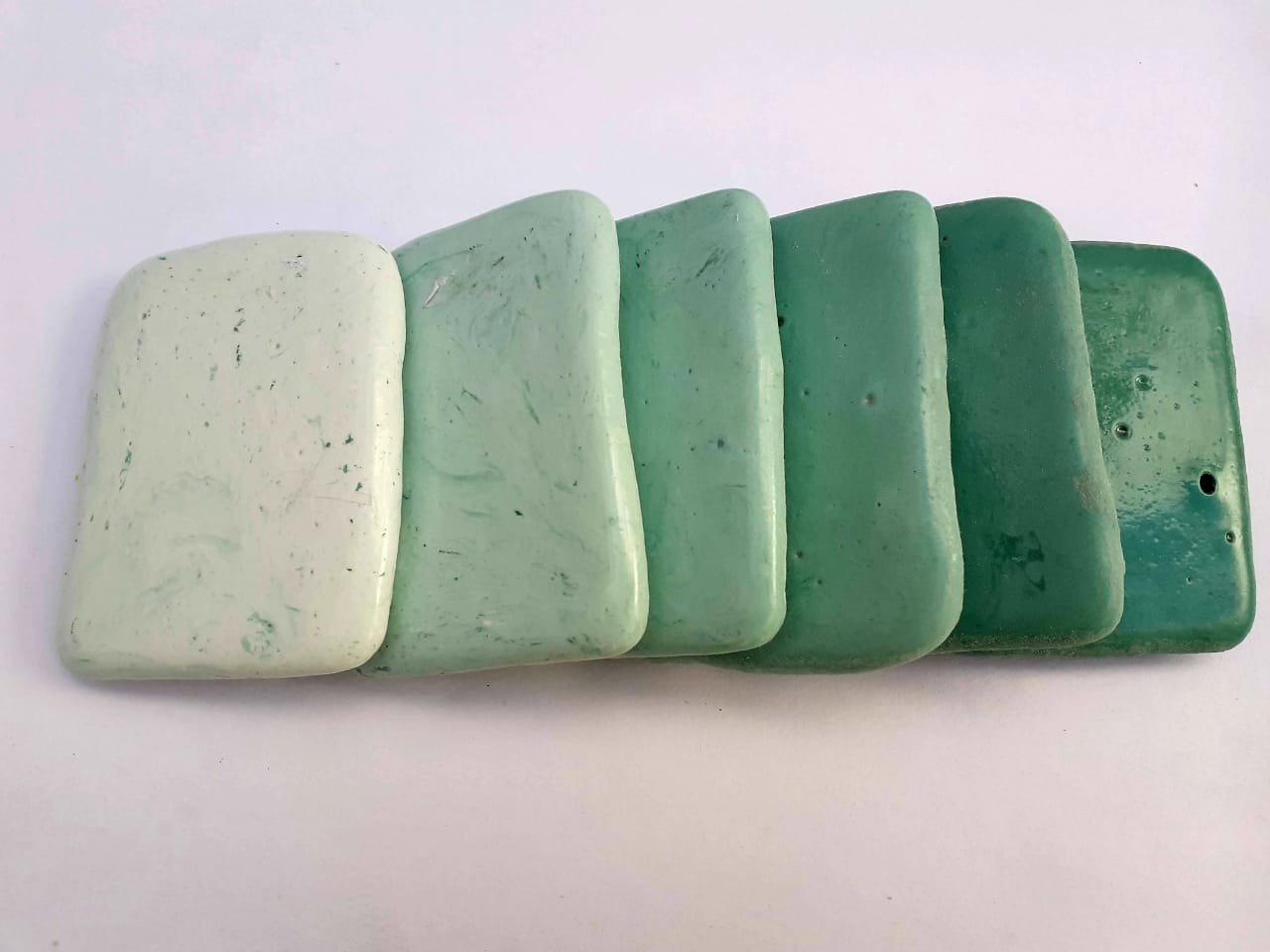 Pasta Vitrea Blanco al Verde Agua x 6 Piezas 600 grs para mosaiquismo, mosaico contemporáneo