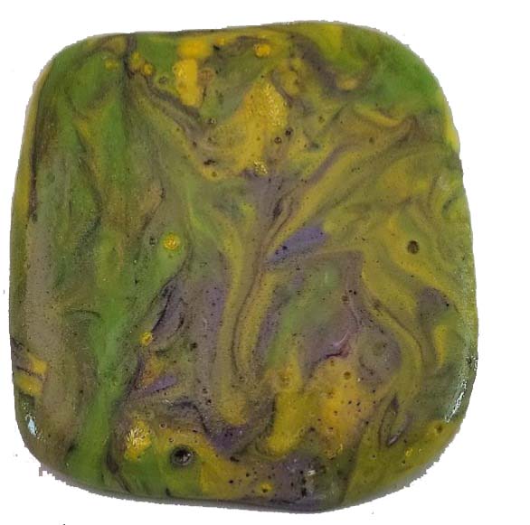 Pasta Vítrea marmolada verde-amarillo-violeta medida 8x8 cm aprox, 5 mm de espesor, 100 grs apox. la unidad para mosaiquismo, mosaico contemporáneo.