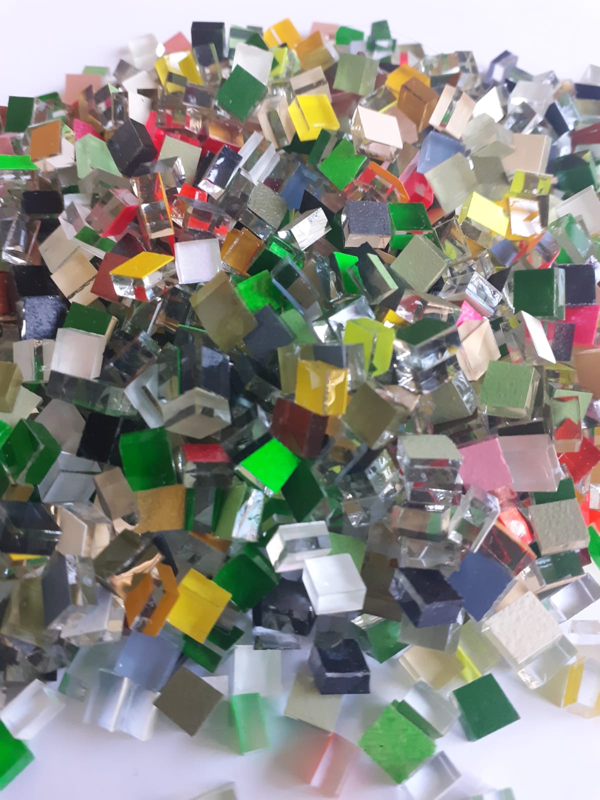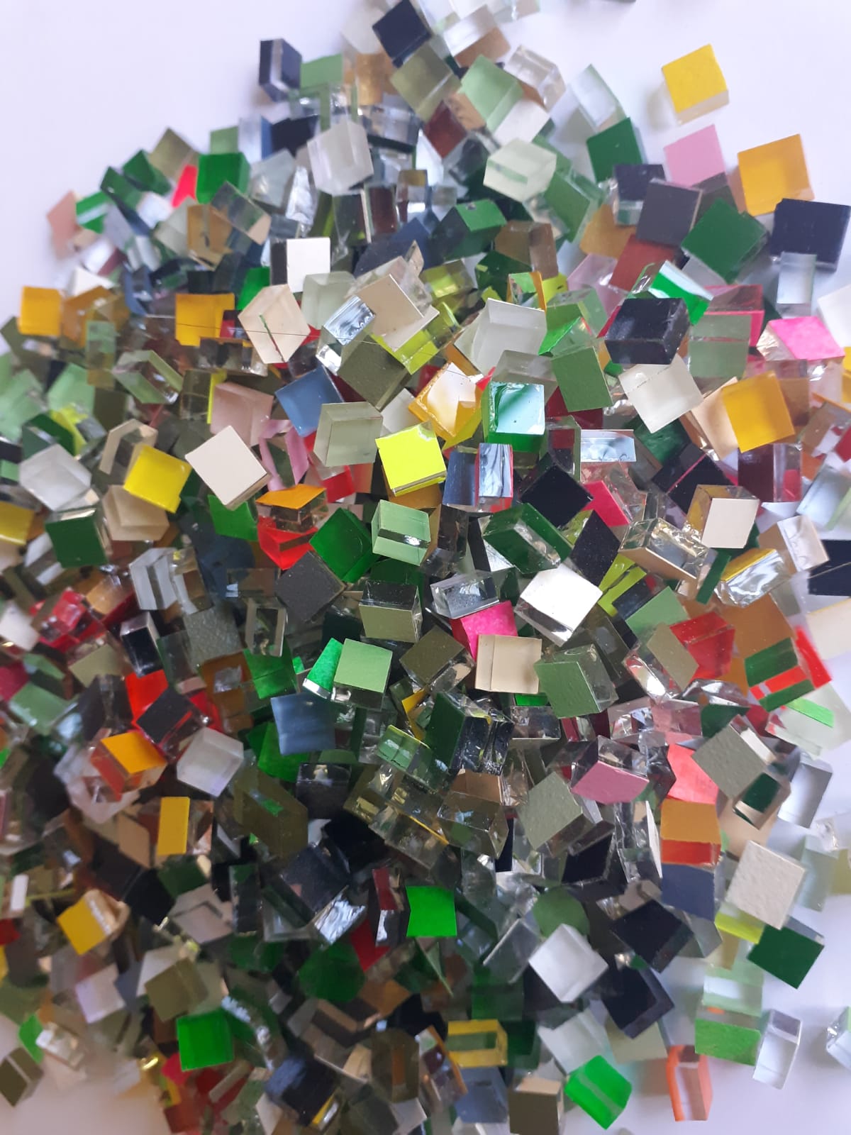 Teselas vidrio multicolor 0,5x0,5 x 25grs , para mosaiquismo