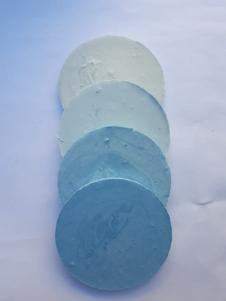Tortas Matisse x 4 Gama Cyan , para mosaiquismo, material simil piedra 9cm diam. cada una. Peso total aprox 300grs total